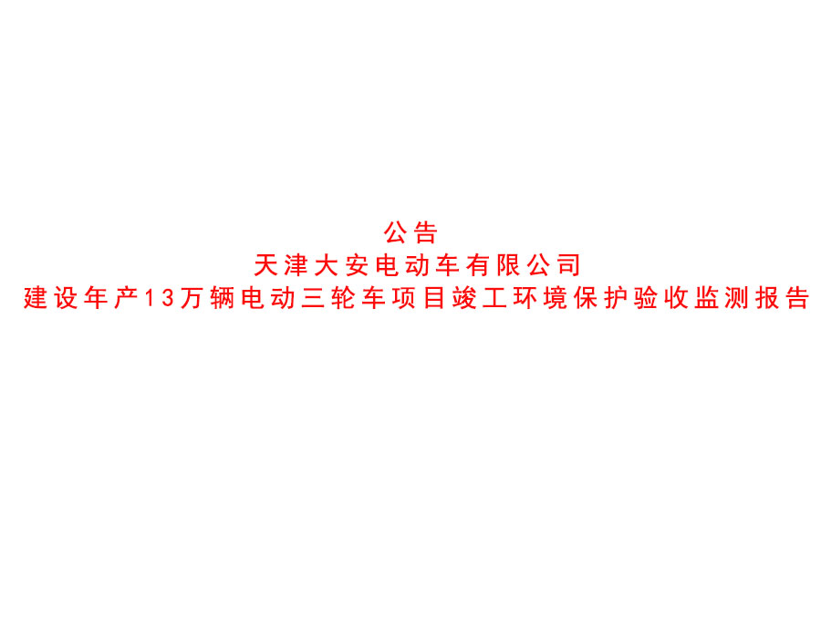 公司動態(tài) 天津大安電動車有限公司建設年產(chǎn)13萬輛電動三輪車項目竣工環(huán)境保護驗收監(jiān)測報告